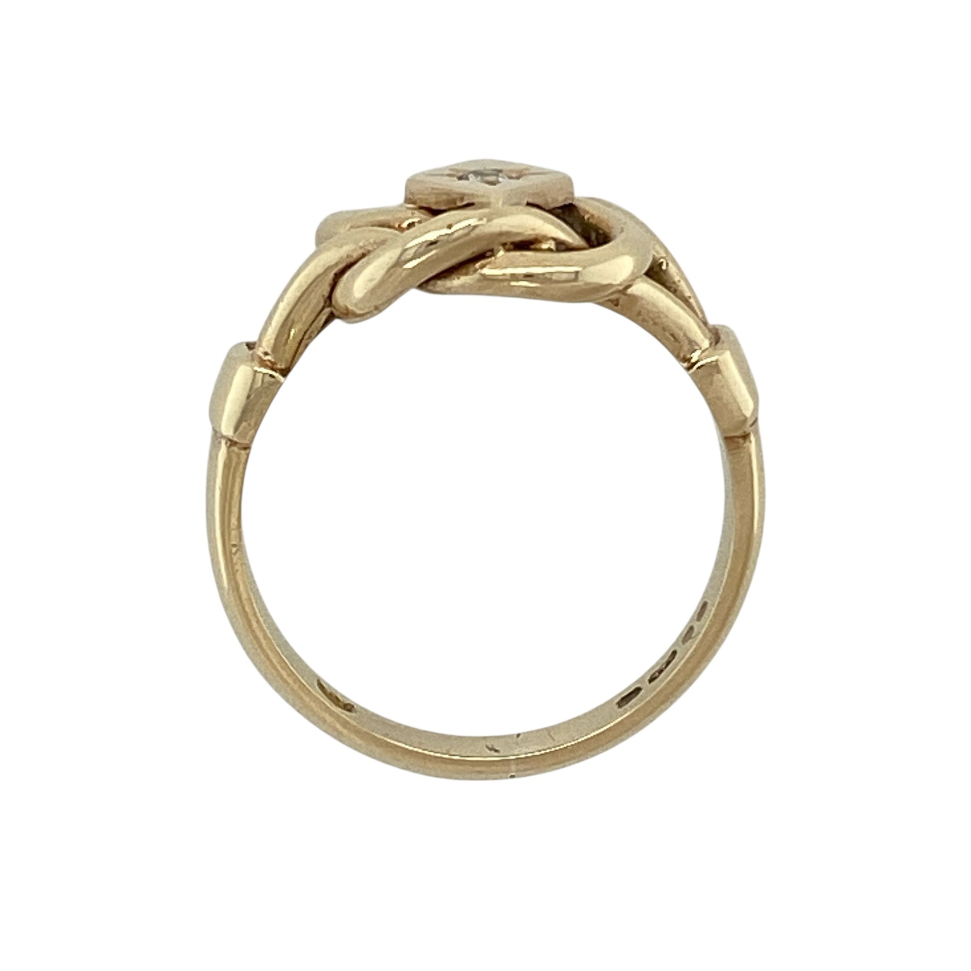 Introduce classic vintage character to your jewellery collection with this pre-owned 9ct yellow gold diamond vintage knot ring, offering timeless symbolism and subtle sparkle—perfect for those who appreciate traditional design with enduring appeal.