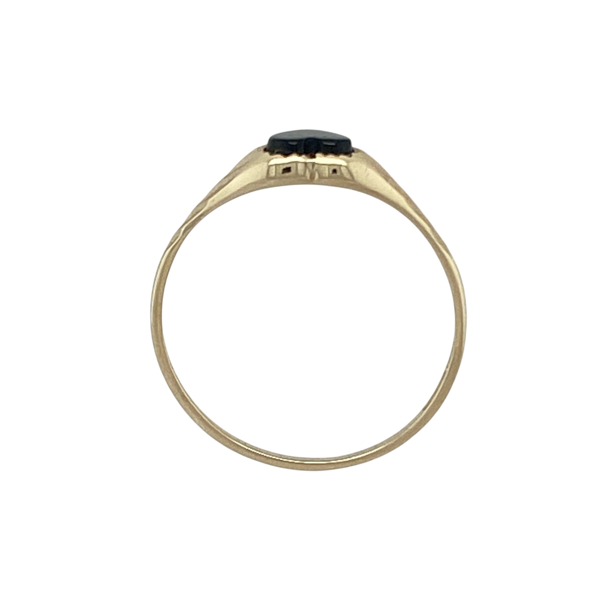 Design: The ring features a heart-shaped onyx gemstone measuring 5mm, displaying a rich black hue that stands out beautifully against the warm yellow gold. Its petite and refined design adds a touch of understated sophistication.