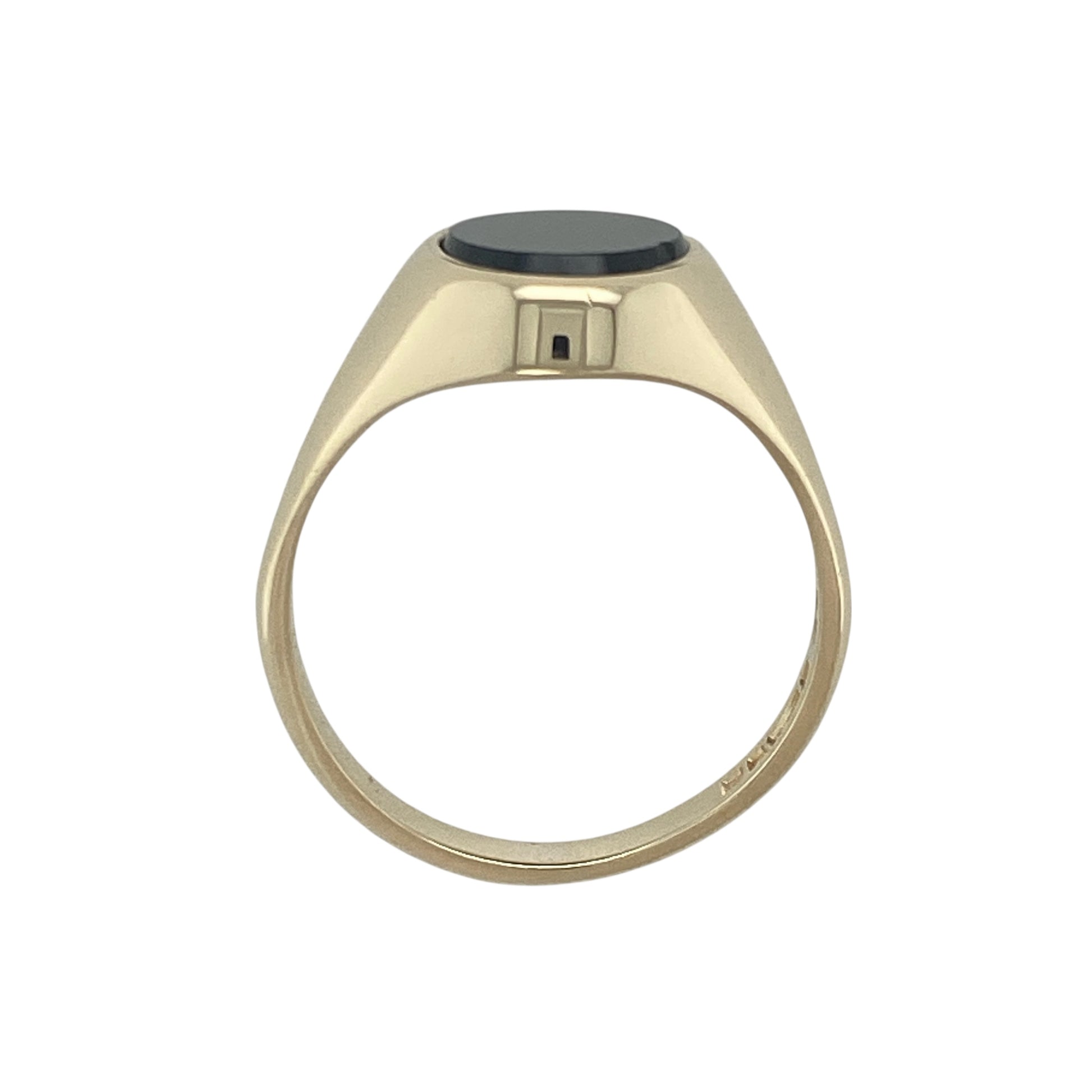 Design: An 11mm by 9mm oval-shaped onyx sits at the centre of a traditional signet setting, offering a bold, smooth surface and elegant profile.