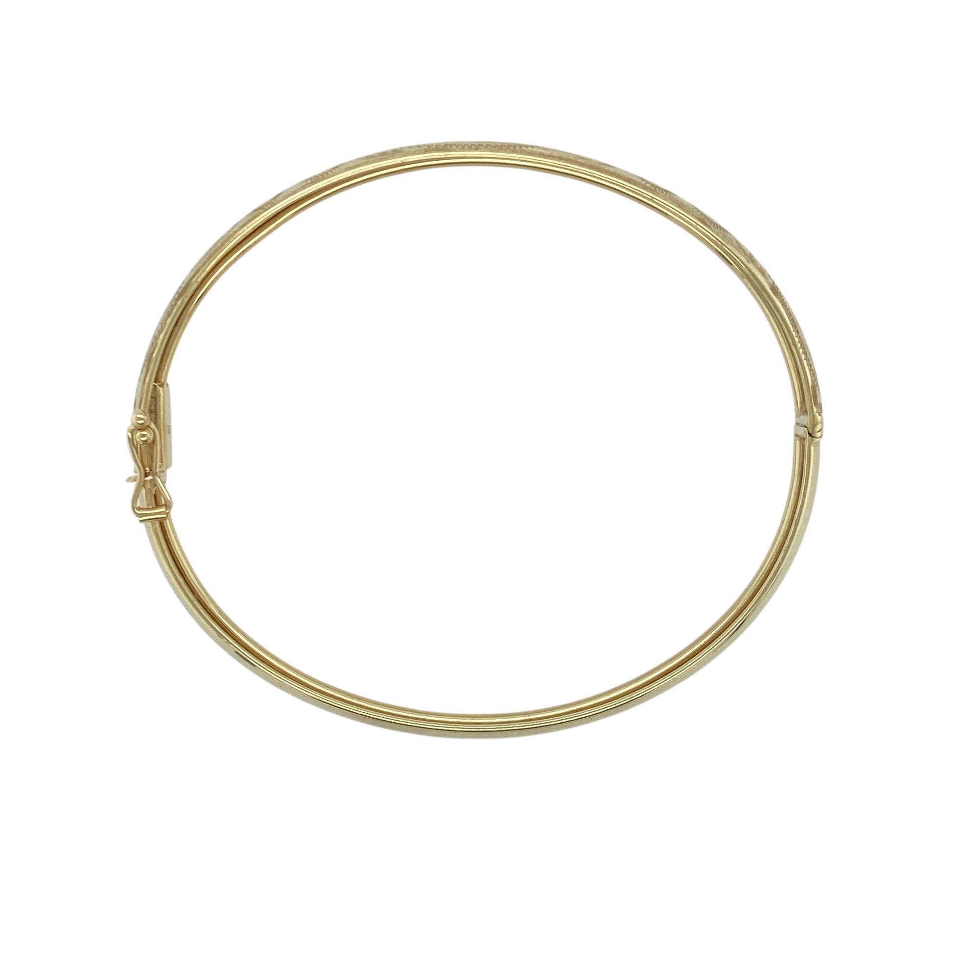 Bring timeless elegance and refined detail to your collection with this pre-owned 9ct yellow gold patterned hinged bangle, combining classic design with a touch of sophistication—perfect for both everyday wear and special occasions.