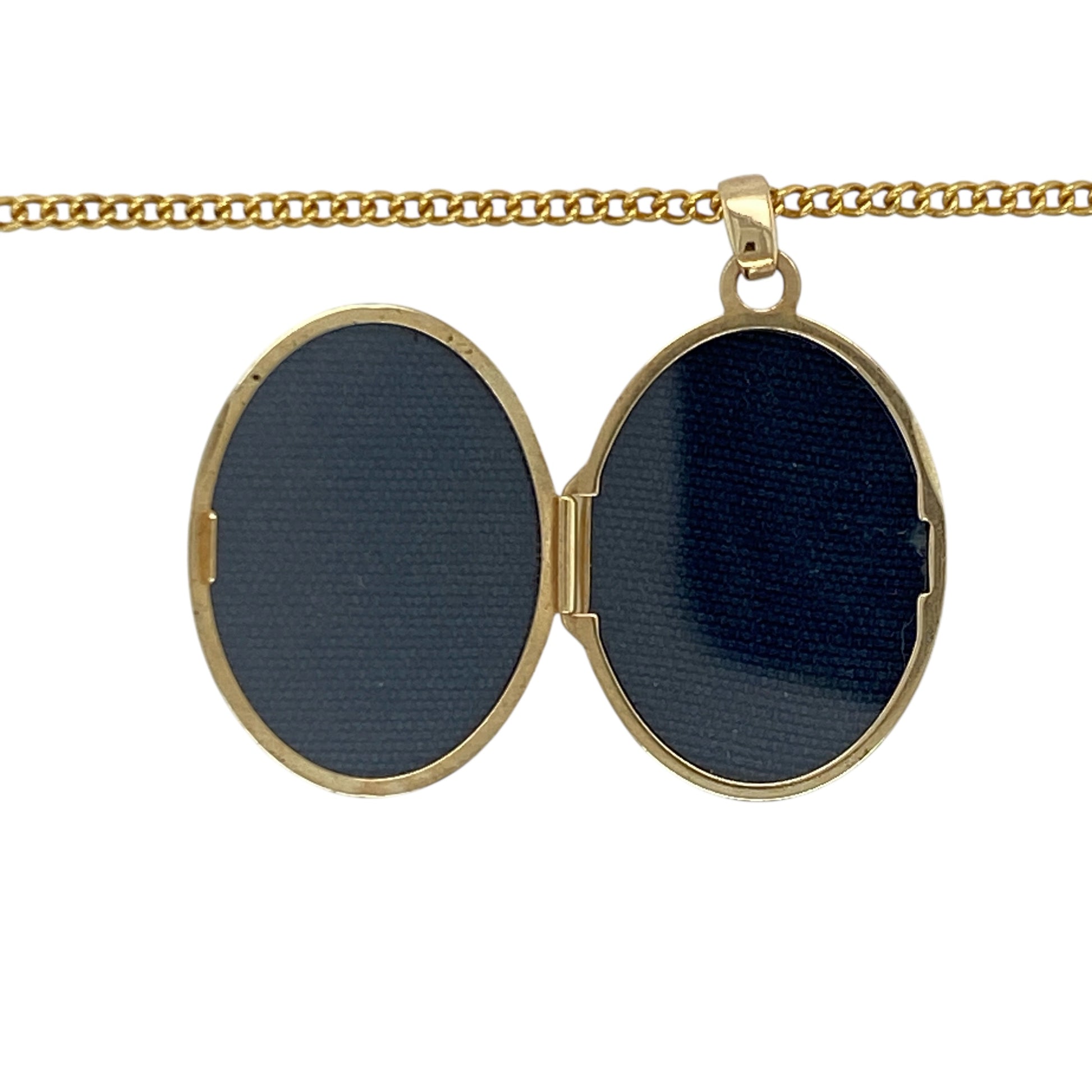 A timeless 9ct yellow gold flower patterned oval locket necklace—perfect as a heartfelt gift or a treasured addition to any fine jewellery collection.
