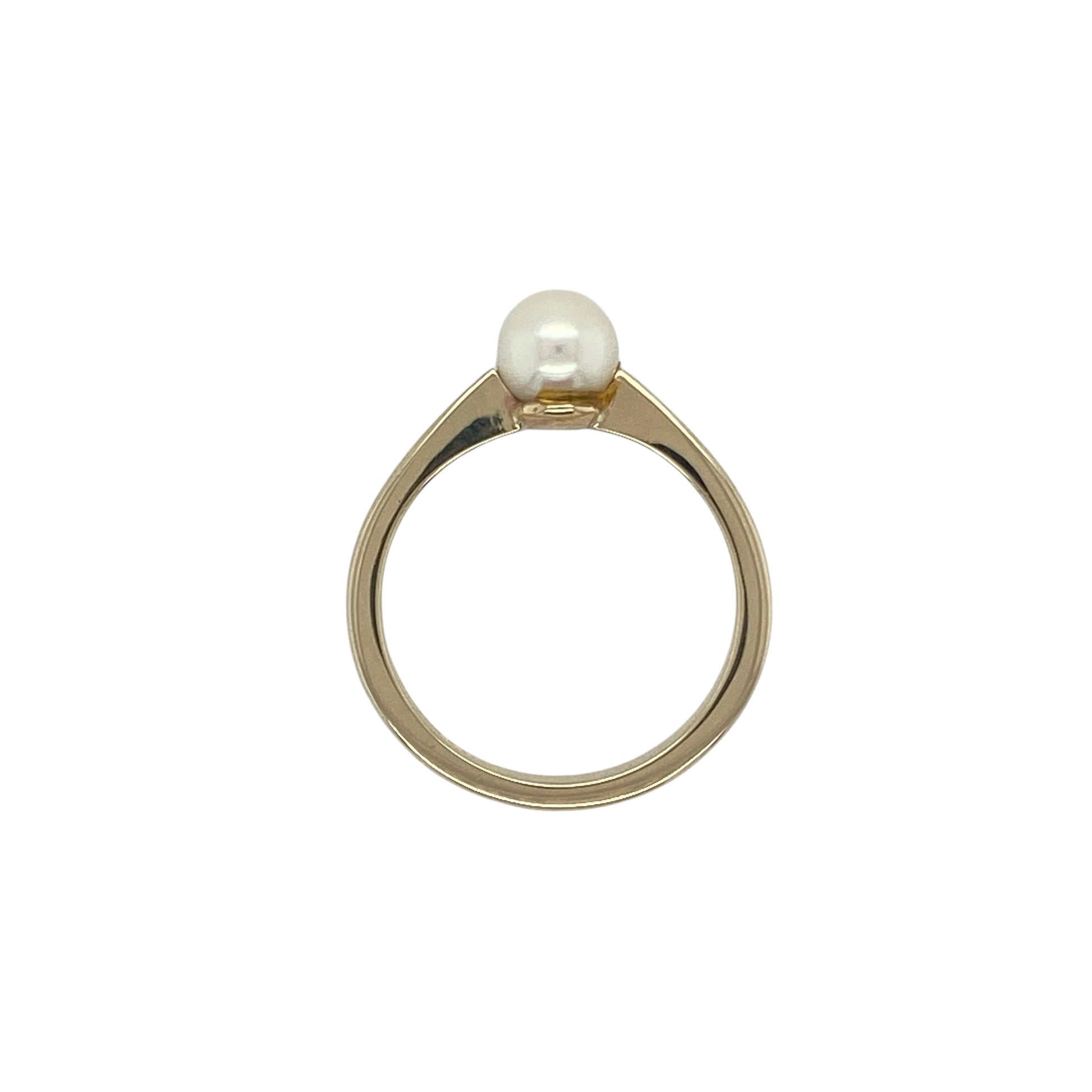 Design: The ring features a single lustrous pearl measuring approximately 6mm by 6mm, presented in a traditional solitaire style that highlights its natural radiance.