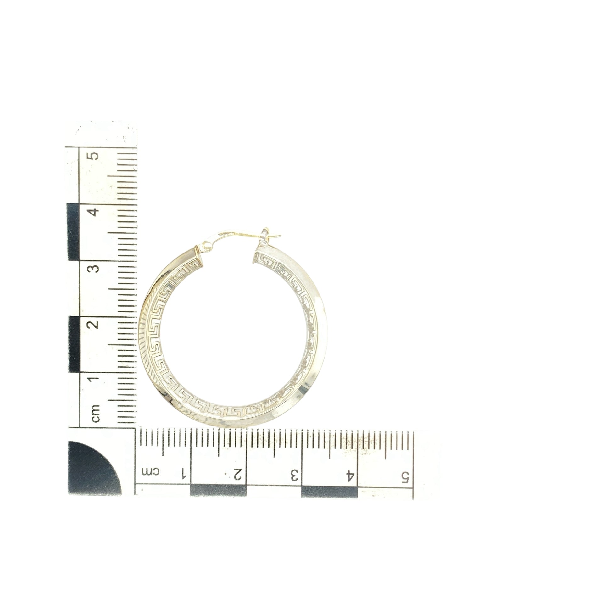 9ct White Gold Greek Key Patterned Hoop Creole Earrings